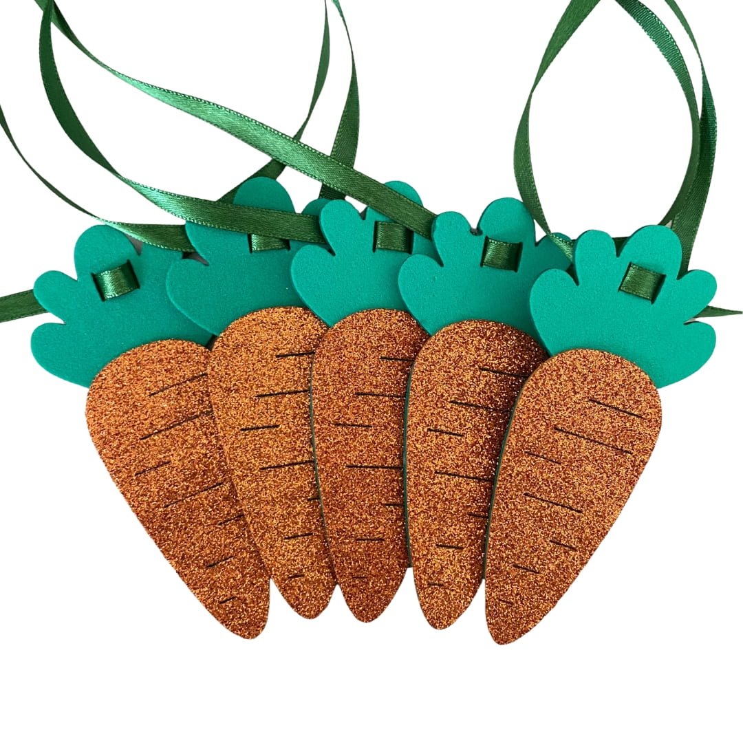A Gravata Pet M vem em pacotes com o modelo de Cenoura em EVA Gliter.